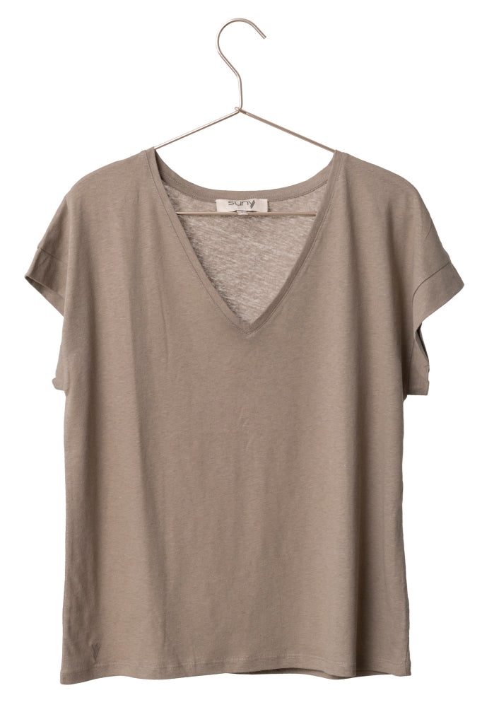 Le tee-shirt iconique Suny, décliné en col rond ou col V, fait son entrée dans l'été dans nouvelles couleurs subtiles et faciles à porter.