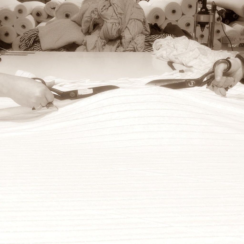 En parallèle d'une production certifiée GOTS, nous avons lancé depuis 2023 une ligne de vêtement en upclycling,une alternative écologique qui a tout pour nous séduire. En effet, l'utilisation de rouleaux de matières dormants stockés dans les usines nous permet de réduire le gaspillage de matière et la surproduction.