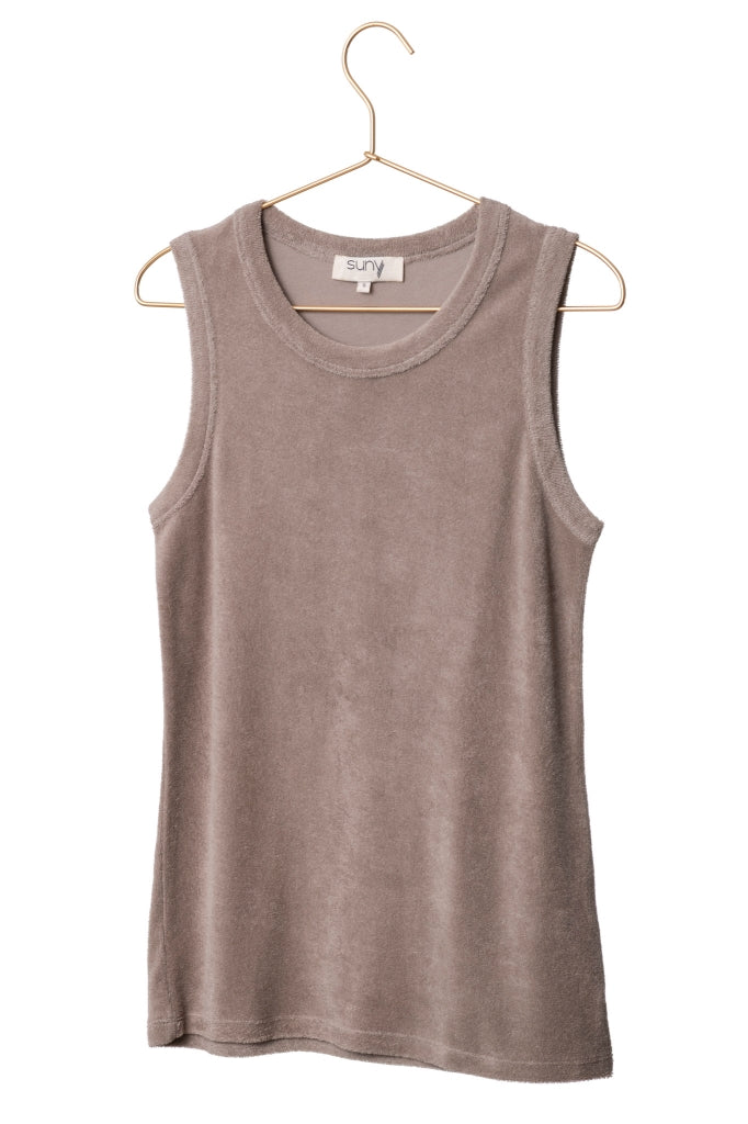 Le débardeur Gisèle incarne l’élégance minimaliste chère à Suny. Confectionné en éponge bouclette de coton biologique certifié GOTS, il séduit par sa matière douce et texturée, aussi agréable à porter que raffinée. Son col rond parfaitement ajusté, sa coupe près du corps et sa longueur idéale en font un essentiel facile à porter.